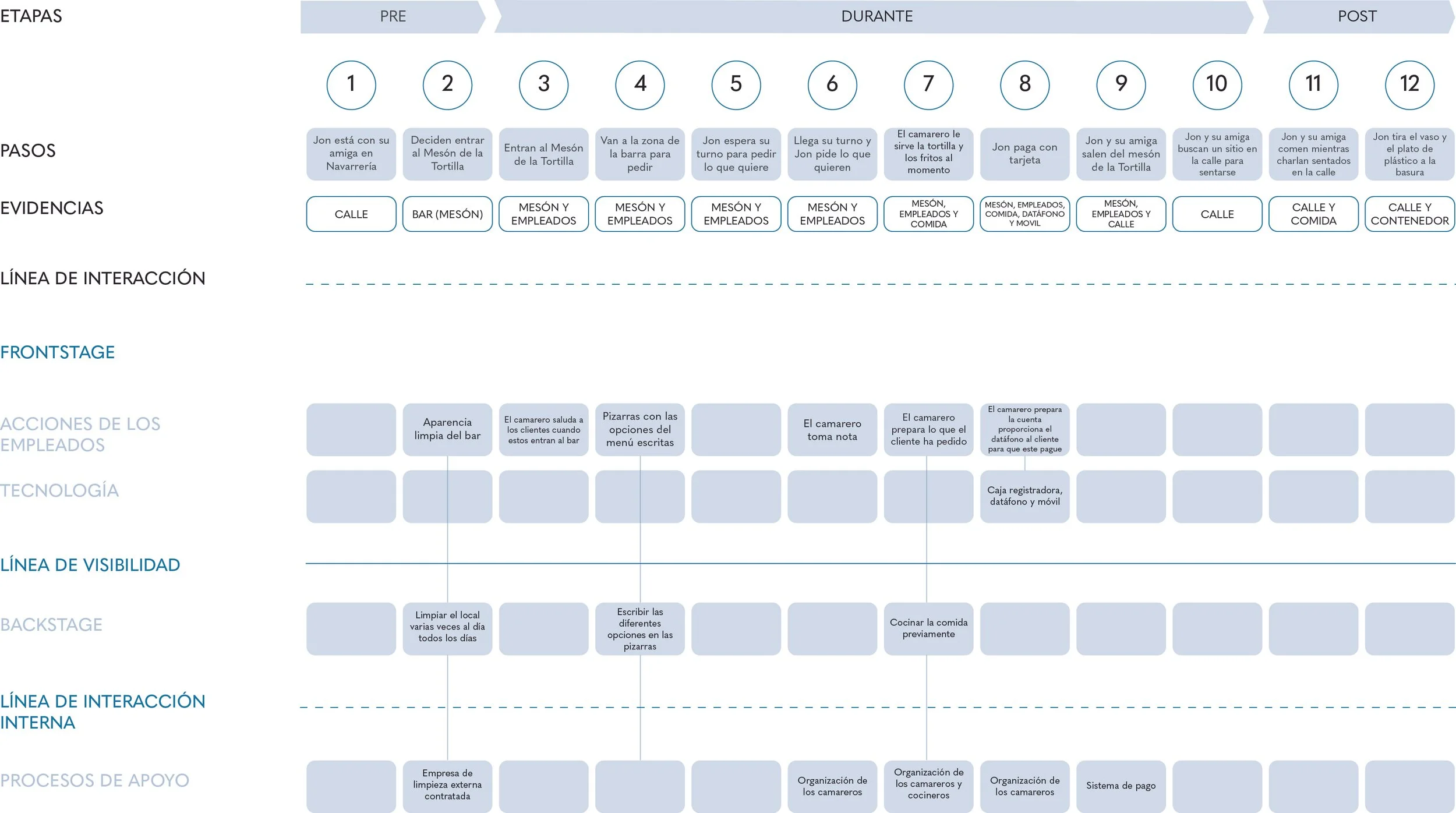 Service Blue Print de un servicio habitual en el Mesón de la Tortilla